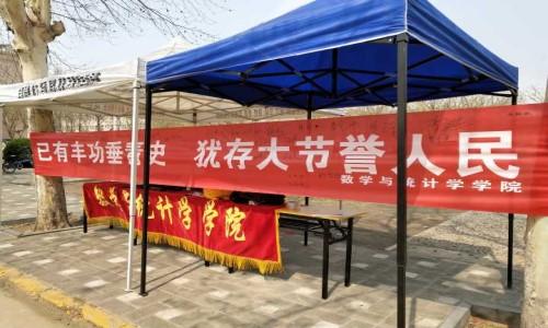 4月3日中午,数学与统计学学院于一餐附近韶华路举办纪念英雄先烈签名活动,活动面对学校每一位同学,大家都积极参加。