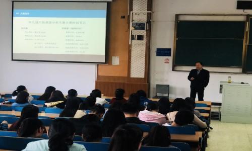 10月29日下午,数统学院副院长李春林在C225为我院学生作第九届全国大学生市场调查与分析大赛赛前解读主题宣讲。