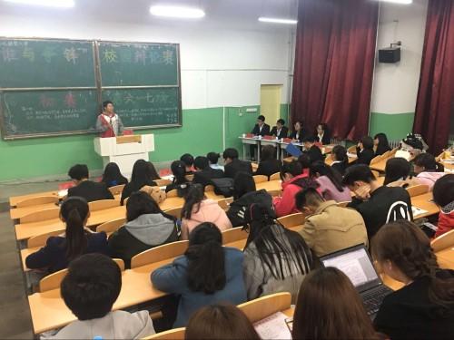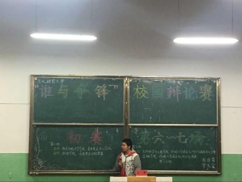 3月23日晚,河北经贸大学2017年“谁与争锋”大学生辩论赛初赛在北一阶教室举行。比赛由学校学生会组织,共有16支代表队参加,200余名学生现场观看了比赛。