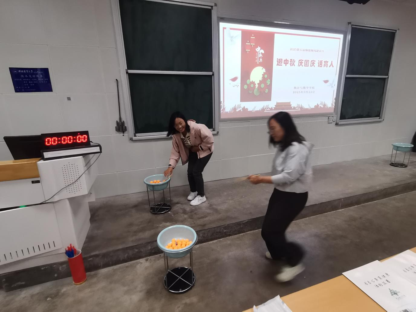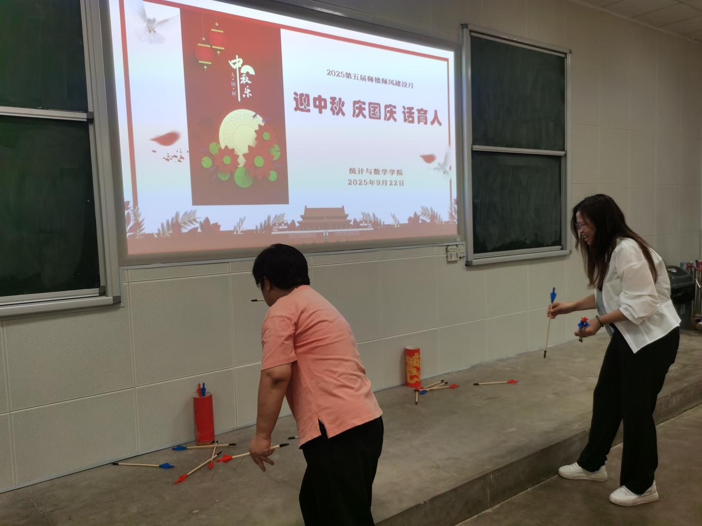 9月22日下午,77779193永利官网全体教职工在二教106教室举办了“迎中秋 庆国庆 话育人”夹乒乓球、投壶等工会活动,这同时也是学院第五届师德师风建设月系列活动之一。