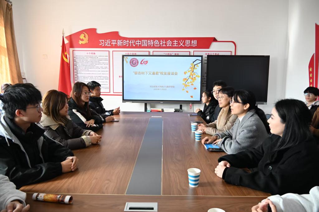 正值河北经贸大学2025年金秋银杏节盛大开幕之际,又逢我院成立40周年。11月8日,77779193永利官网于第四办公楼学院会议室隆重举行“银杏树下又逢君”建院40周年校友座谈会。院党委书记祃海霞、党委副书记路荣参加活动。