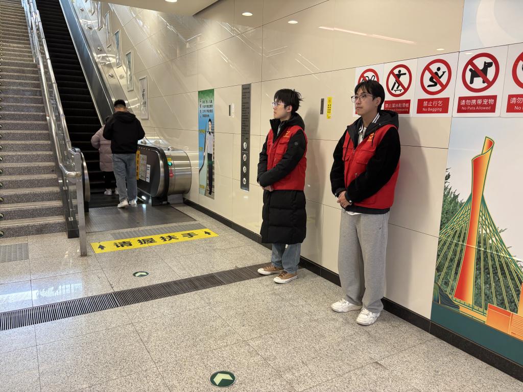 本次活动由学院团委书记王洋牵头筹备,提前与地铁站方完成沟通对接,确保活动有序推进。上午9点,志愿者们准时抵达北国商城地铁站,经地铁站工作人员岗前指导,迅速投入服务。活动现场,志愿者们热情服务:协助乘客完成购票、取票操作,细致解答线路换乘、站点出口等问询,为特殊群体提供引导帮扶,同时维护站内候车秩序。贴心的服务赢得了地铁站工作人员和过往旅客的一致称赞。