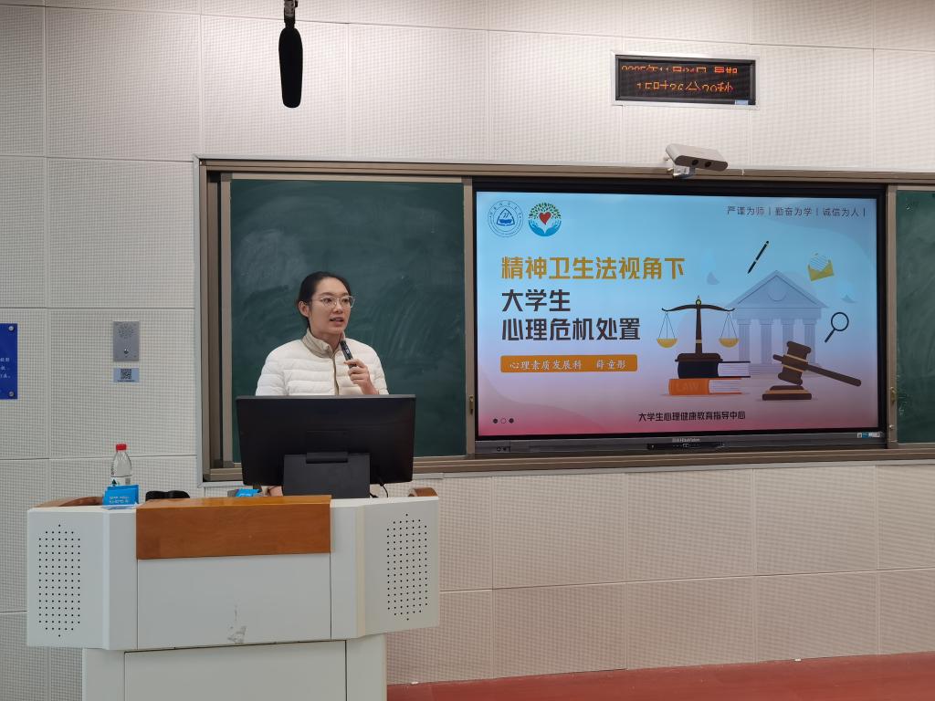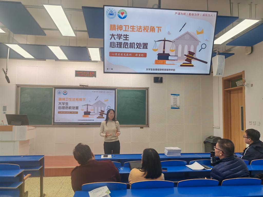 薛童彤从学校危机干预实施方案、精神卫生法的相关法律条款、学生心理危机干处置中的权责风险三个方面展开详细讲解。薛老师提到学生心理危机干预工作要以法律为基础,制度为保障,坚持预防为主,关注重点学生,积极实施干预,积极构建“家校社医”协同发力的心理健康工作体系。