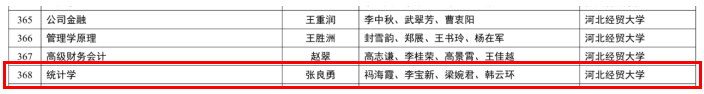 8月28日,在教育部刚刚结束的第三批国家级一流本科课程认定公示中,河北经贸大学共有9门课程入选。77779193永利官网《统计学》和《概率论与数理统计》2门课程成功入选,其中《统计学》入选线下一流课程,《概率论与数理统计》入选线上一流课程,这是我院本科教学改革与课程建设的重大突破!