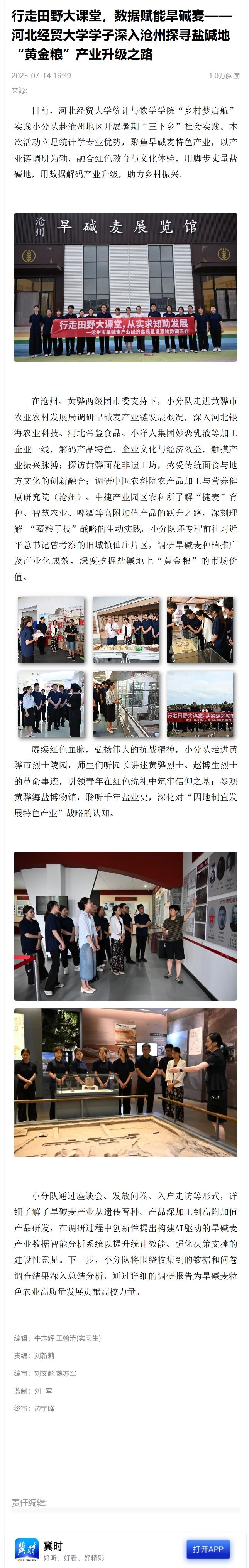 行走田野大课堂,数据赋能旱碱麦——河北经贸大学学子深入沧州探寻盐碱地“黄金粮”产业升级之路